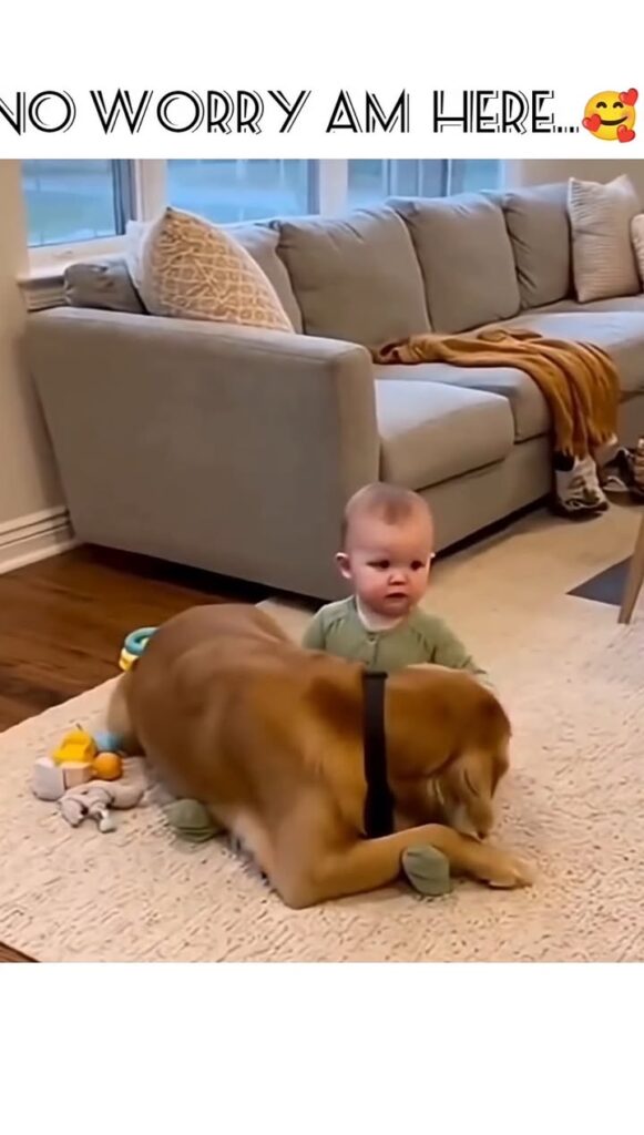 The baby, still shaken by the noise outside, reached out his small hand and touched the dog’s warm fur. The steady breathing and comforting presence of his furry friend soothed him. Another burst of thunder crashed from the sky—louder than before—but this time the baby didn’t cry. He simply leaned closer, seeking safety in the one place he knew he’d find it.