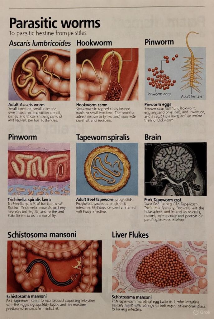 Here is a clear, medically accurate overview of the most important worms that can live in the human body, how they get in, symptoms, diagnosis, and treatment.