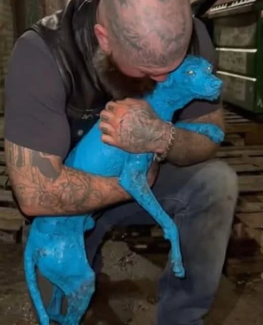 It was a dog, covered in blue industrial paint, stiff as stone, and barely clinging to life.