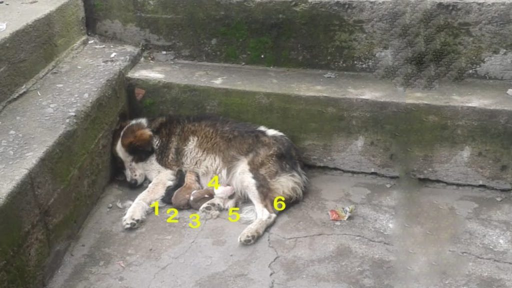 People passed by. Some glanced in her direction. Others avoided eye contact entirely. In a world where everyone seems to be rushing somewhere, it is painfully easy to overlook suffering that doesn’t directly touch us. Azucena, weak but determined, continued to give birth, one fragile life at a time. Six puppies arrived, each one small, blind, and utterly dependent on her.