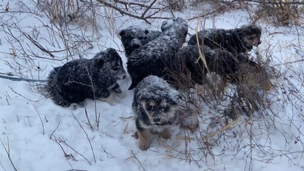 -20 degrees, 7 puppies trembling and desperately calling for their mother on the mountain top