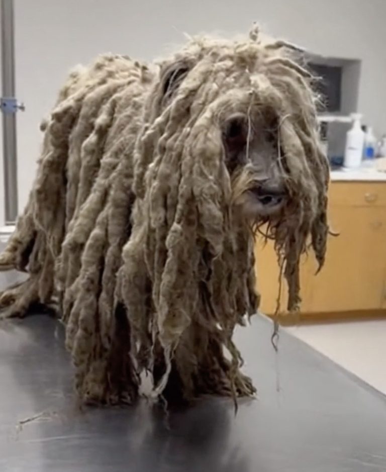 Once the situation was cleared by authorities, Sonador was transported to a veterinary clinic where the most immediate need could finally be addressed: removing the suffocating mass of fur that covered him. The grooming session was not simply cosmetic. It was medical, necessary, and transformative. As clippers carefully worked through the thick layers, pounds of tangled hair fell away. With every pass, more of Sonador emerged. Beneath the heavy coat was a dog no one had truly seen in years.